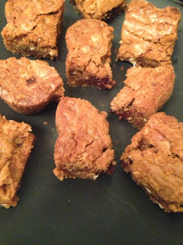 Stir in the white chocolate chips and macadamia nuts (both raw and toasted).